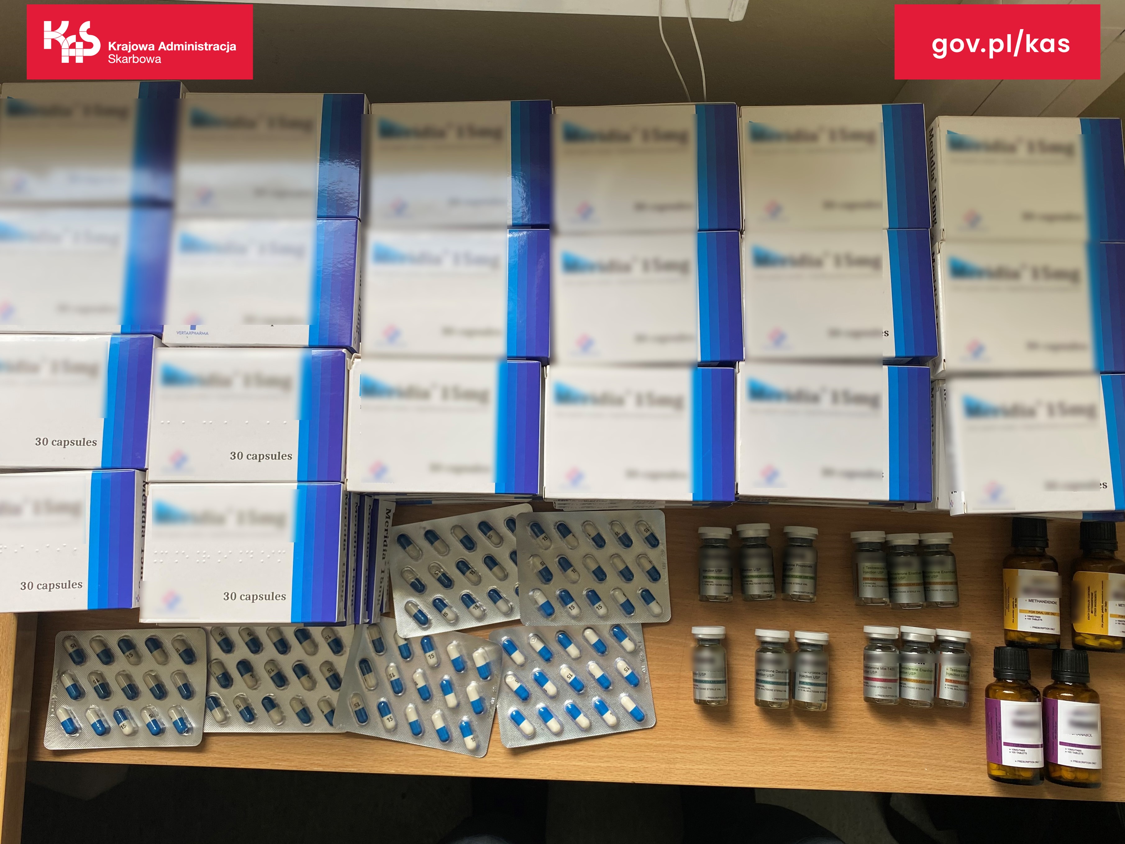 - Funkcjonariusze kujawsko-pomorskiej Krajowej Administracji Skarbowej (KAS) zatrzymali 3,4 tys. tabletek oraz 12 szklanych opakowań z lekarstwami zawierającymi substancje zmniejszającą łaknienie oraz silne sterydy.
