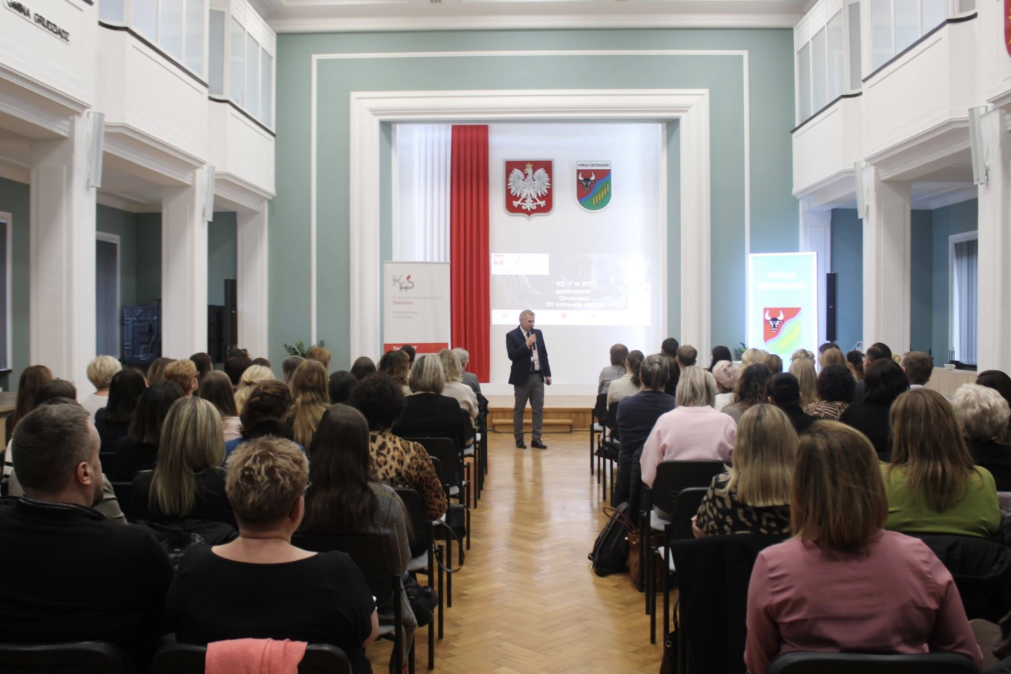W siedzibie Starostwa Powiatowego w Grudziądzu szkolenie poprowadzili pracownicy Urzędu Skarbowego w Grudziądzu. Uczestniczyło w nim ponad 70 przedstawicieli gmin z terenu powiatu grudziądzkiego oraz pracowników ich jednostek organizacyjnych. Podczas spotkania zaprezentowano Moduł Certyfikat i Uprawnień, obejmujący logowanie, nadawanie uprawnień oraz generowanie certyfikatów. Omówiono również możliwości środowiska testowego i przedprodukcyjnego KSeF 2.0 oraz dostosowanie struktury logicznej FA(3) do specyfiki funkcjonowania jednostek samorządu terytorialnego.