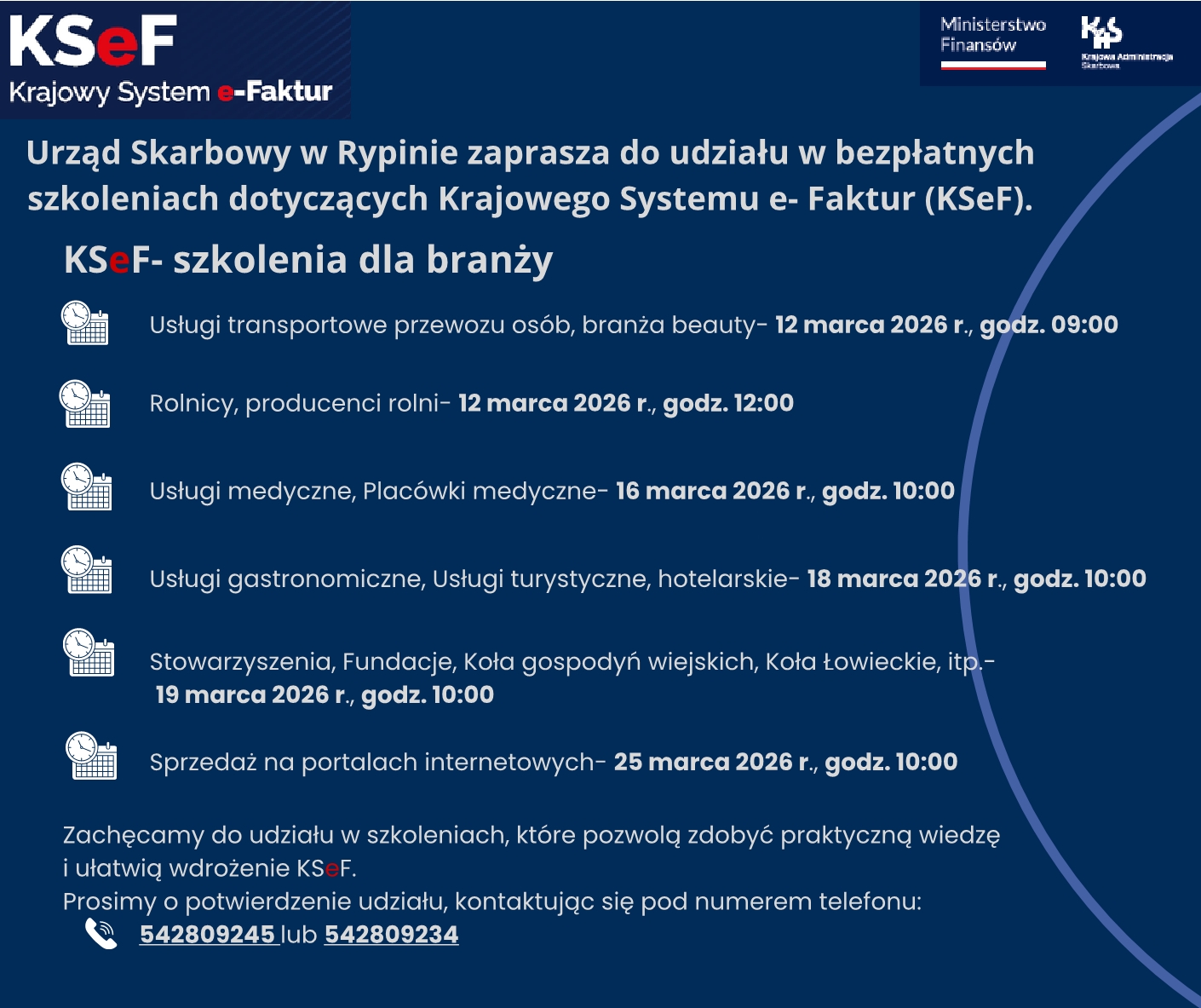Zaproszenie na szkolenia branżowe z KSEF prowadzone przez Urząd Skarbowy w Rypinie - terminy w marcu 2026 r.