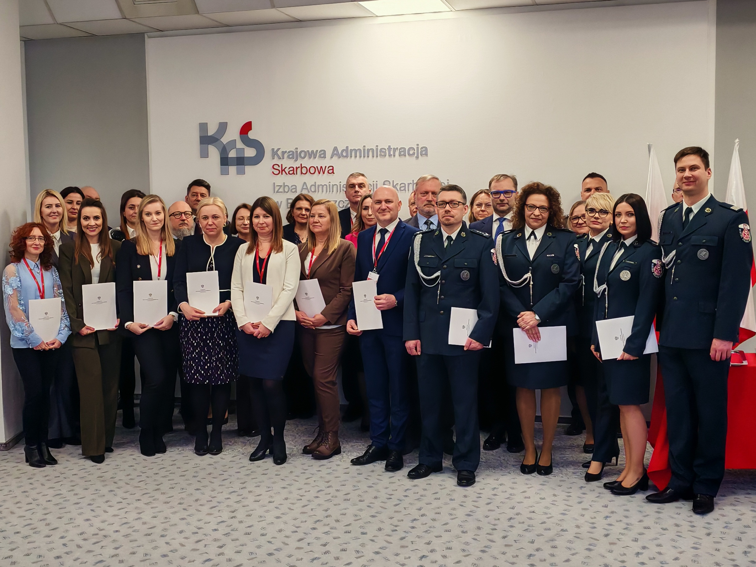 17 lutego 2026 r. w Izbie Administracji Skarbowej w Bydgoszczy odbyły się uroczystości z okazji Światowego Dnia Celnictwa i Dnia Służby Cywilnej. Podziękowania pracownikom korpusu służby cywilnej oraz funkcjonariuszom Służby Celno-Skarbowej za wzorowe wykonywanie obowiązków, sumienność i zaangażowanie w codzienną pracę i służbę złożył Dyrektor IAS w Bydgoszczy Grzegorz Łysio. Podczas uroczystej zbiórki wręczono awanse w Służbie Celno-Skarbowej i korpusie służby cywilnej.