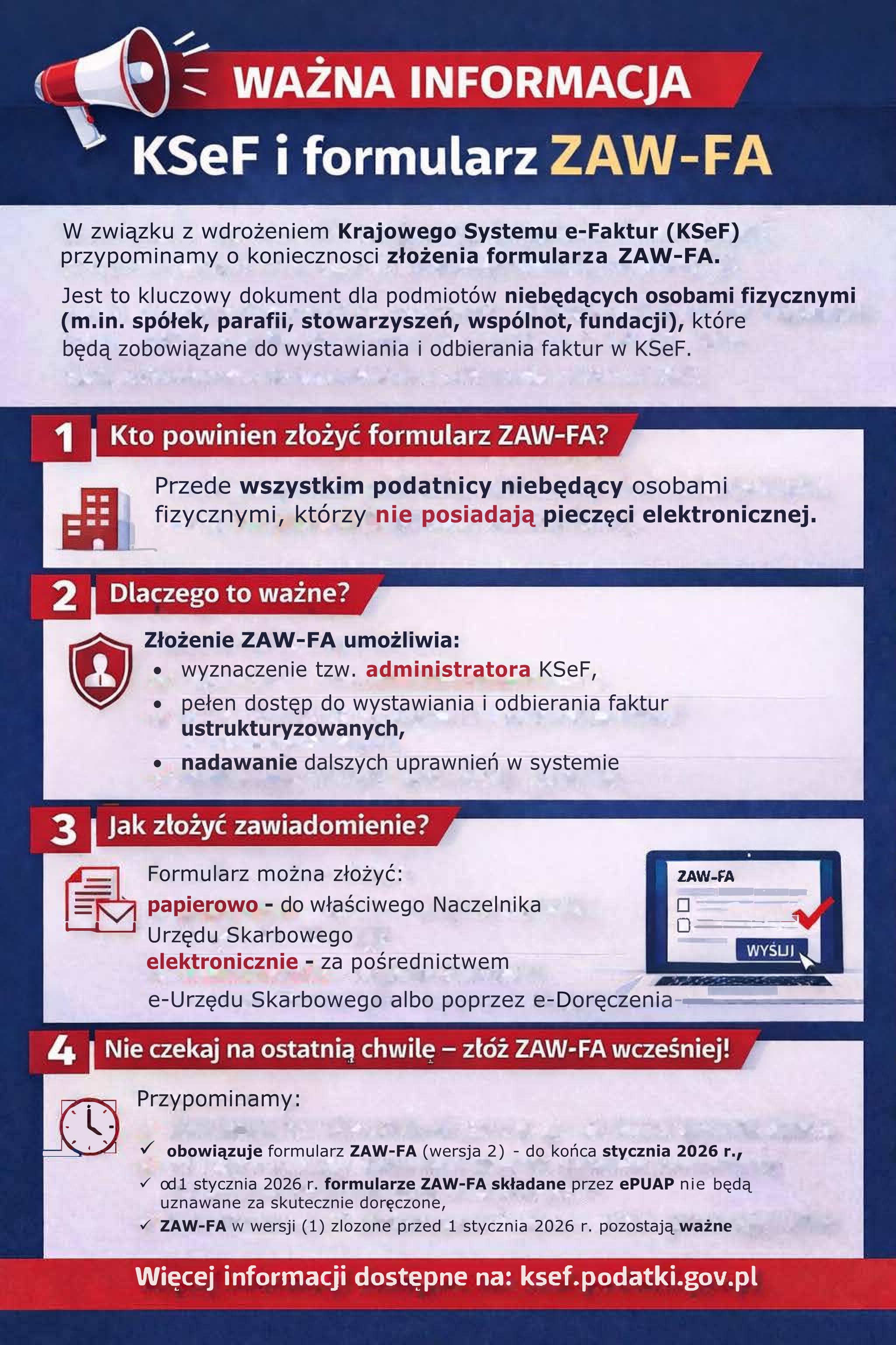 Informacja o konieczności złożenia Formularza ZAW-FA w KSeF.