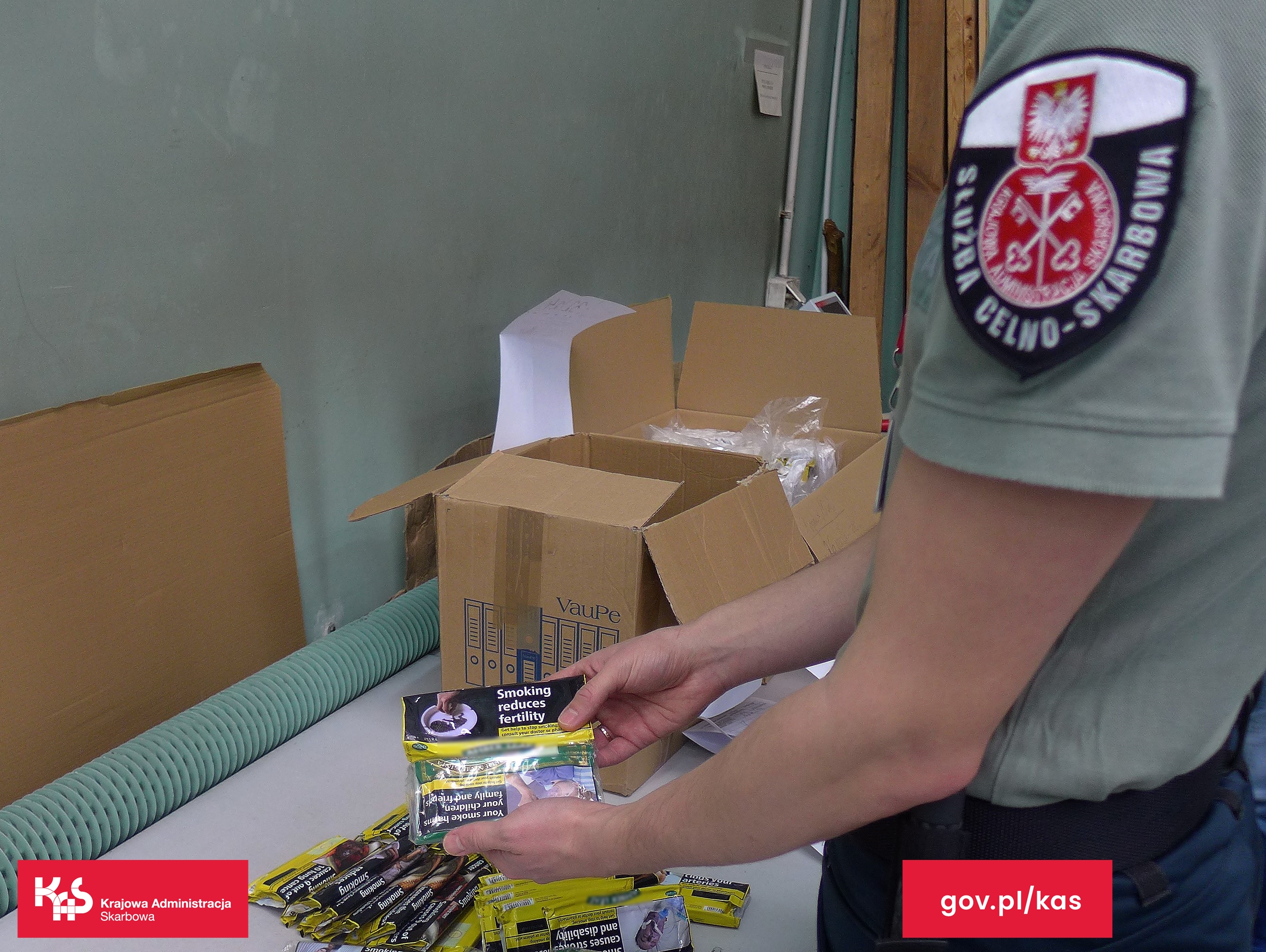 Funkcjonariusze Służby Celno-Skarbowej kontrolują przepływ towarów