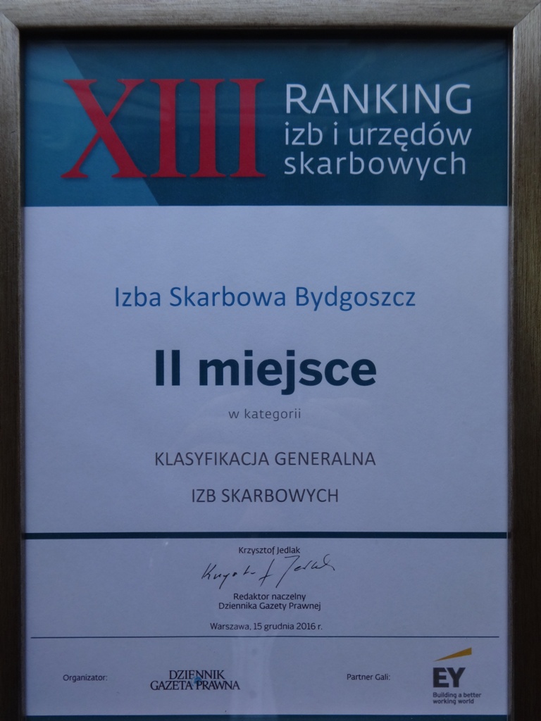 - Izba Skarbowa w Bydgoszczy zajęła II miejsce w Rankingu Izb i Urzędów Skarbowych Dziennika Gazety Prawnej