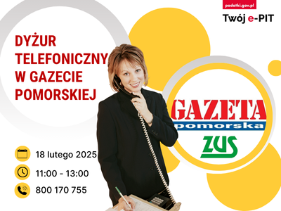 Kujawsko-pomorska KAS i Zakład Ubezpieczeń Społecznych zapraszają na dyżur telefoniczny ekspertów w Gazecie Pomorskiej.